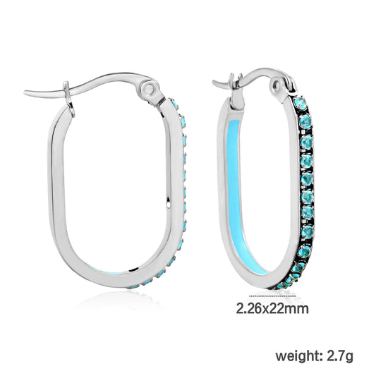 Wholesale Teal Rhinestone Gold-Plated Finish 2.26*22mm Size Crystal Oval Hoop Earrings Premium Stainless Steel | MOQ 12+