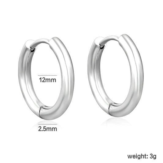 Wholesale 12mm 3-Style Silver Hoop Earrings Set | Hypoallergenic Stainless Steel | Minimalist & Layered Design Jewelry