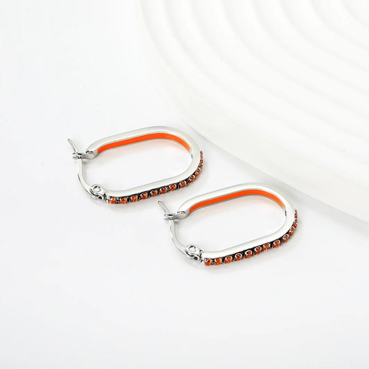 Wholesale Orange Rhinestone Silver-Plated Finish Crystal Oval Hoop Earrings | 2.26*22mm | MOQ 12+