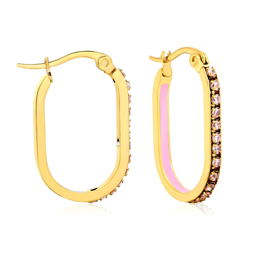 Pink Rhinestone Gold-Plated Finish Premium Stainless Steel Hoop Earring | 2.26*22mm Size | Wholesale MOQ 12+