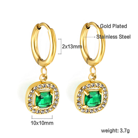 2x13mm circle with square green diamond + white diamond hoop earrings