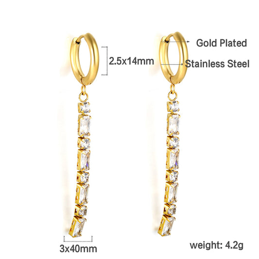 Spring 2024 2.5x14mm Circle with Square Long White Diamond Stud Earrings