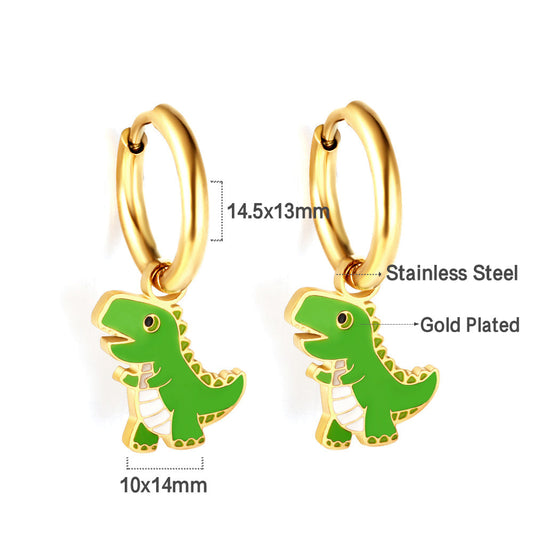 Stainless Steel 18k Gold Plated Dinosaur enamel Earrings kids girls jewelry