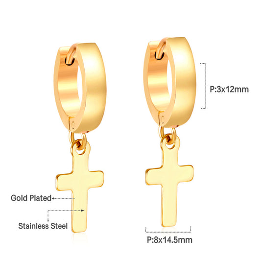 3*12mm Curved Surface Buckle 8*15mm Cross Earrings