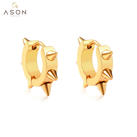 ASON Spikes Hip-hop Punk Hoops Earrings Gold Color Stainless Steel For Women Men Fashion Jewelry Accessorie Daily Wear Boho