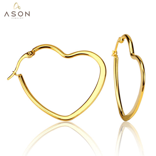 ASON Heart Shape Hoops Earrings Gold Color Size 25mm/35mm/45mm Stainless Steel Big Dangler Female Accessories Piercing
