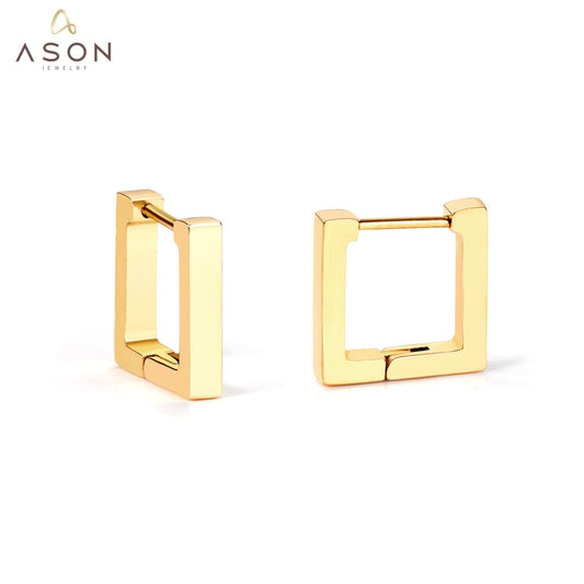 ASON Gold Color Square Rectangle Piercing Hoops Earrings Stainless Steel Geometric Earrings for Women Fashion Jewelry Gift