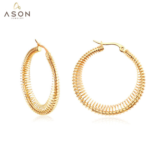 ASON Trendy Stainless Steel Thick Earrings Gold Color Piercing Boho Hoops Earring for Women Girl Gift Fashion Jewelry