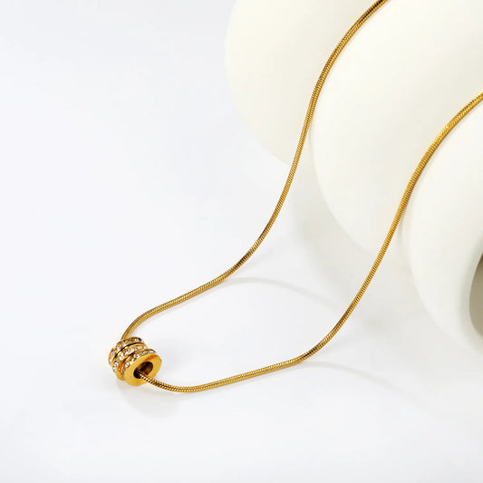 Hollow Three-rings Pendant with Rhinestones 1.2mm Round Snake Chain 45cm Necklace with Round Tag for Wholesale