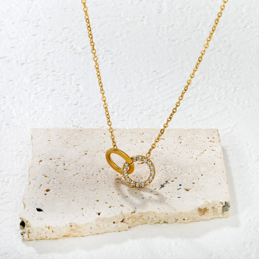 Wholesale Openwork Circle Ring with Rhinestone + Smooth Circle Cross Chain Gold-plated Necklace