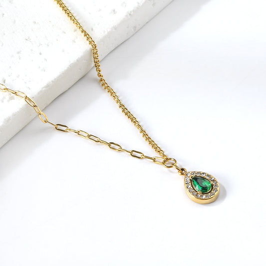 Spring 2024 teardrop green diamond + white diamond circle pendant necklace 46+5cm