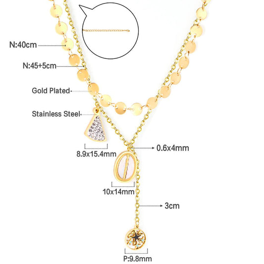45+5CM Gold Color Luxury Triangle With Crystal Pendant Necklaces For Women Double Chain Jewelry bijoux femme 2021