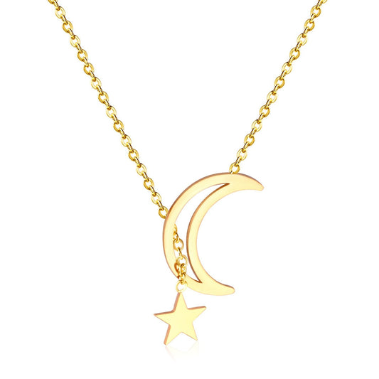 Moon Star Pendants Necklaces Gold Color Stainless Steel Link Chain Choker Necklace Set For Women Girls Jewelry