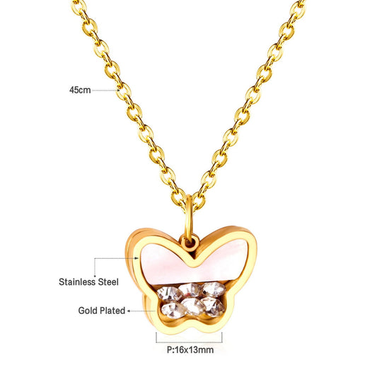 Butterfly CZ Shell Pendants Necklaces Women Gold Stainless Steel Link Chains Choker Necklace collares colar collier
