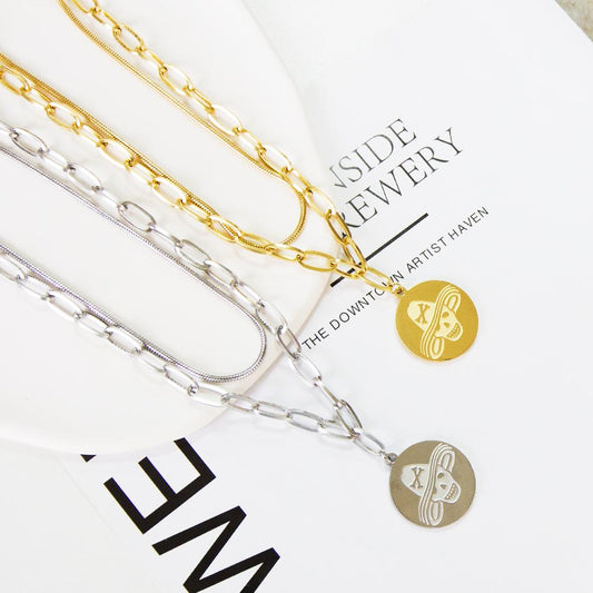 Beads Chains Layer Necklace For Women Stainless Steel Accessories Silver Color Ring and Heart Pendants Fashion Jewelry
