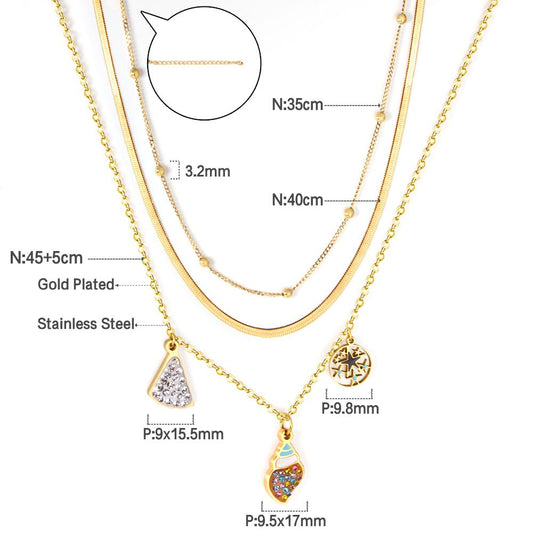 ASON Trendy Multi-layer Conch Star Pendant Necklace Gold Color Stainless Steel Snake Chain for Women Fashion Jewelry Gift