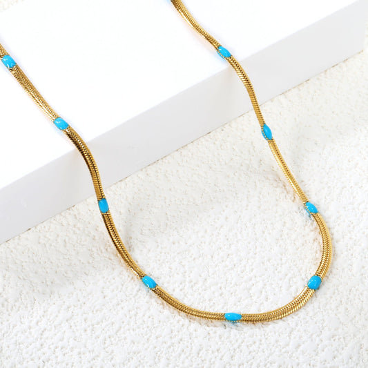 19 places front and back blue oil drop necklace 2.3mm*42+5cm