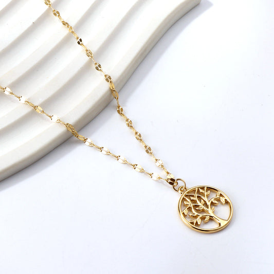 Wholesale Round Hollow Circle Big Tree Pendant Necklace 40+5cm Gold Color