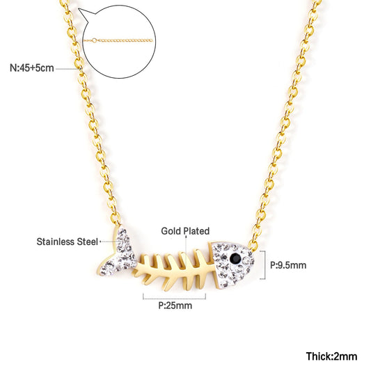 Regular price From $1.87 USDRegular priceUnit price / perSale price From $1.87 USD25*9.5mm fish bone pendant with white diamonds necklace 45+5cm