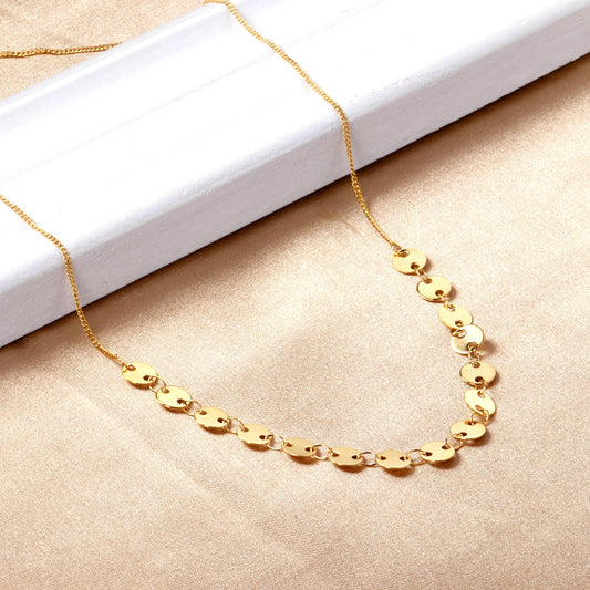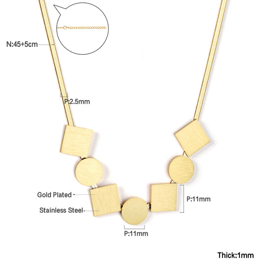 11mm square + 11mm round brushed pendant necklace 45+5cm gold color