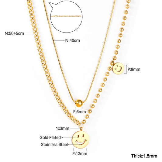Regular price From $3.03 USDRegular priceUnit price / perSale price From $3.03 USD6mm steel beads + large 12 small 8 smiley face pendant necklace 50+5cm