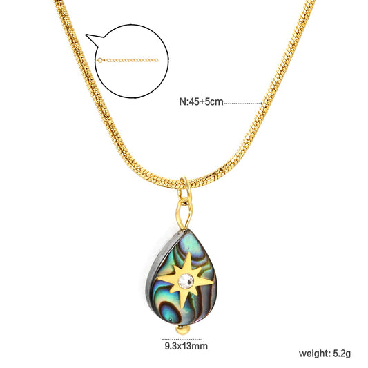 9.3*13mm Teardrop Abalone Shell with Octopus White Diamonds Pendant Necklace 1.3mm*45+5cm+6mm Round Plaque Gold Color