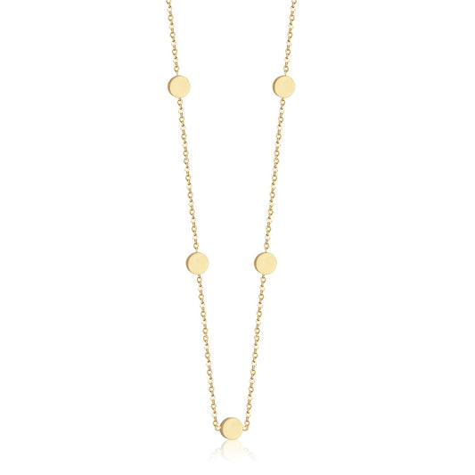 5 9mm three-dimensional six-petal flower necklace 40+5cm+6mm round plate Gold color