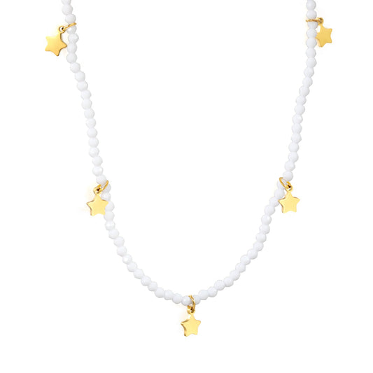 4.3*6mm pentagram accessories +2mm white/mineral black beads necklace 40+5cm+6mm round plate Gold color