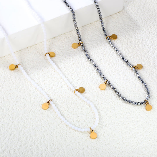 4*5.7mm round accessories +2mm white/mineral black beads necklace 40+5cm+6mm round plate Gold color