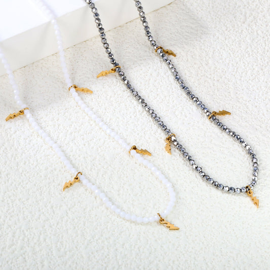2*6.8mm lightning bolt accessories +2mm white/mineral black beads necklace 40+5cm+6mm round plate Gold color
