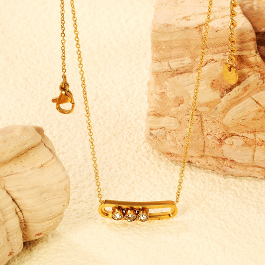 22.8*5.6mm slide U frame+3.5mm round white zirconia pendant necklace 45+5cm+6mm round end tag gold color