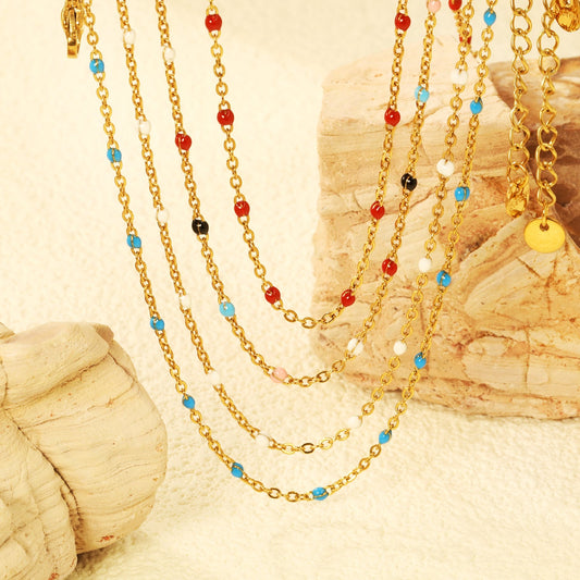 White/red/blue/mixed color dot drop glue necklace 0.4 cross chain 40+5cm+6mm round plate Gold color