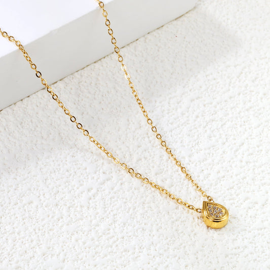 8.5*11mm teardrop CNC white zirconium circle pendant 40+5cm+6mm round plate necklace gold color