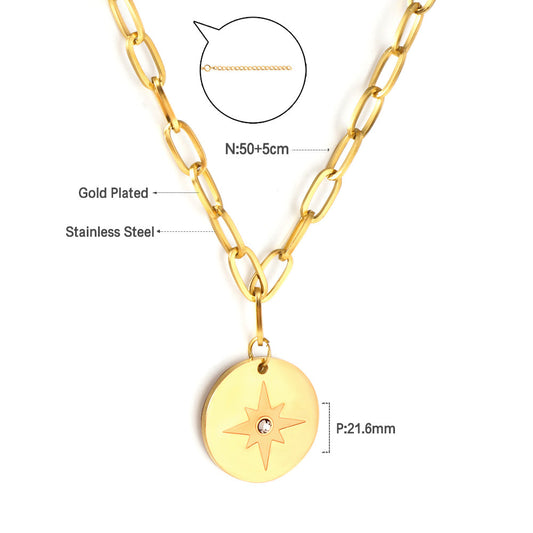 Girls Kids Jewelry Stainless Steel Round Accessories Lucky Star With Diamond Necklace