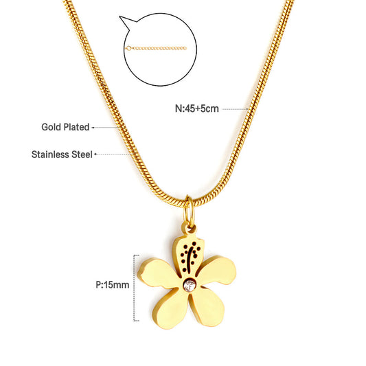 Stainless Steel Peach Blossom Accessory with Diamond Necklace