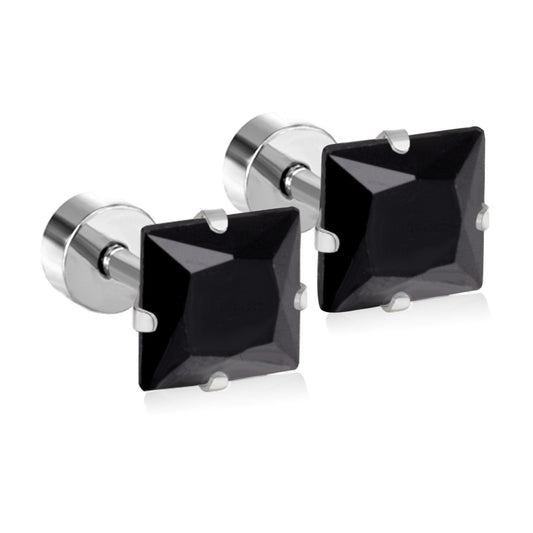 ASON 3-7mm Square Cubic Zirconia Screw Piercing Stud Earring Set Gold Color for Women Girl Men Ear Stainless Steel Jewelry
