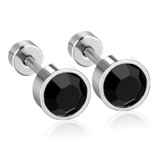 ASON 3-7mm Round Crystal Screw Piercing Stud Earrings Gold Color Black Stainless Steel Female Christmas Gift Party Jewelry