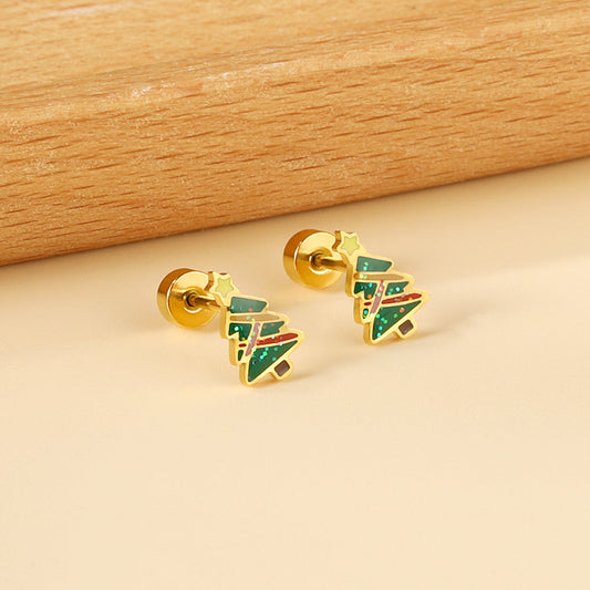 Screw-plug Christmas Fruit Mixed Color Stud Earrings