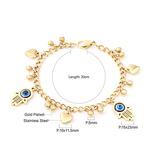 Stainless Steel Oval Hollow Round Mixed Color With Heart-shaped Accessory Bracelet
