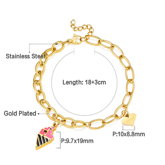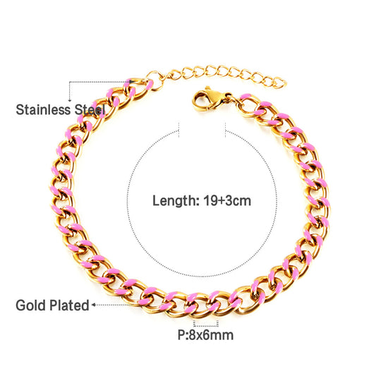 Stainless Steel Pink Drip Oil Bracelet Chain