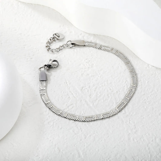 Wholesale 4.0 Herringbone Chain Bracelet in Stainless Steel | Gold & Silver Finish Available | Flat Snake Link Minimal Bracelet