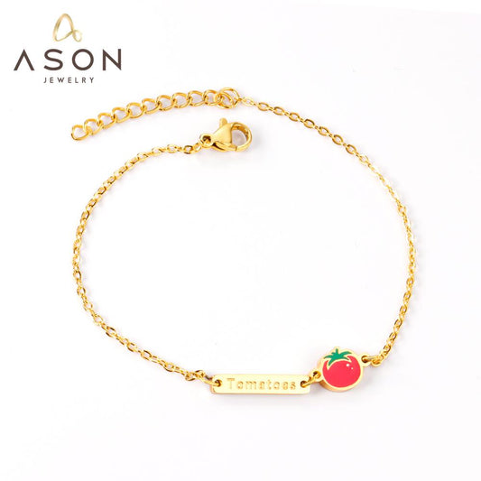 ASON Lovely Cartoon Tomato Charm Bracelet 316L Stainless Steel Adjustable Bangle for Women Gift Fashion Jewelry Accessories
