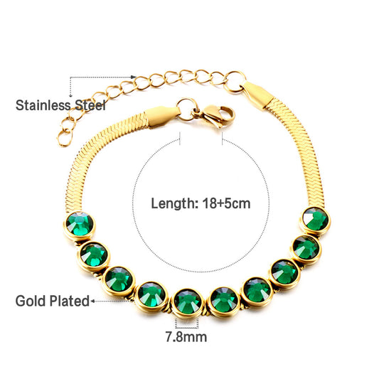 10 Green Round Connected Row Diamonds Accessories Bracelet