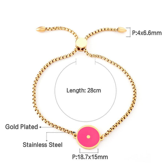 ASON 28 cm Pink Round Shape Accessory BraceletsTrendy Gold Color Stainless Steel For Women Daily Wear Jewelry Adjustable