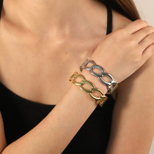 Regular price From $4.44 USDRegular priceUnit price / perSale price From $4.44 USD✨ 60x17.7mm 18K Gold PVD & Silver Tone Bangle Bracelet Wholesale (MOQ 12+) | Stainless Steel 🌍 | Hypoallergenic Cuff & Chain Bangles