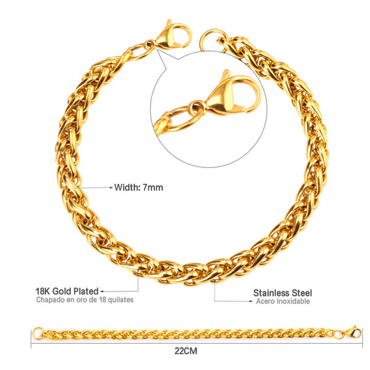 7mm Chain Bracelets Stainless Steel Gold Color for Men Women Party Gift Fashion Bangle Jewelry