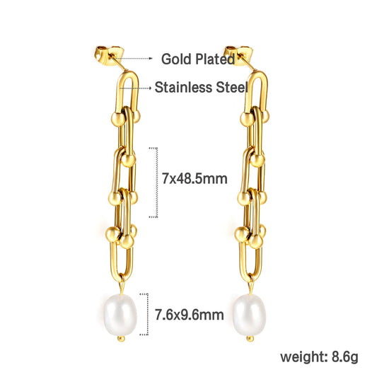 Spring 2024 7*48.5mm Horseshoe Chain with White Pearls 7.6*9.6mm Earrings