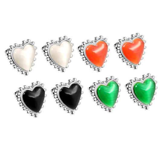 Regular price From $2.33 USDRegular priceUnit price / perSale price From $2.33 USDLoose Bead Edge Heart with White / Black / Red / Green Cat's Eye Stones Earrings 17.8*17.5mm