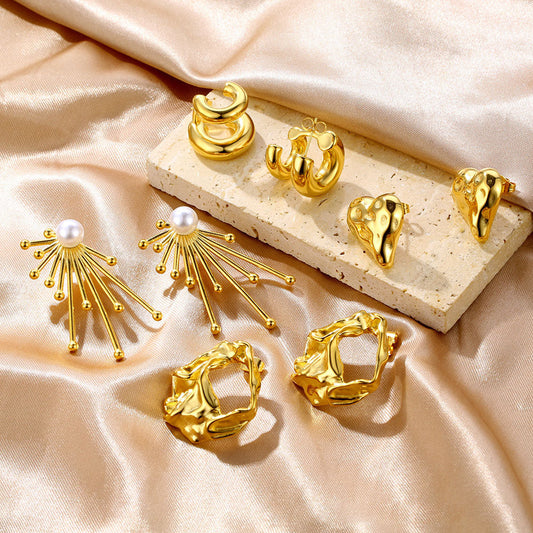 Trendy jewelry 18k gold stainless steel radiating earrings temperament fashion earrings
