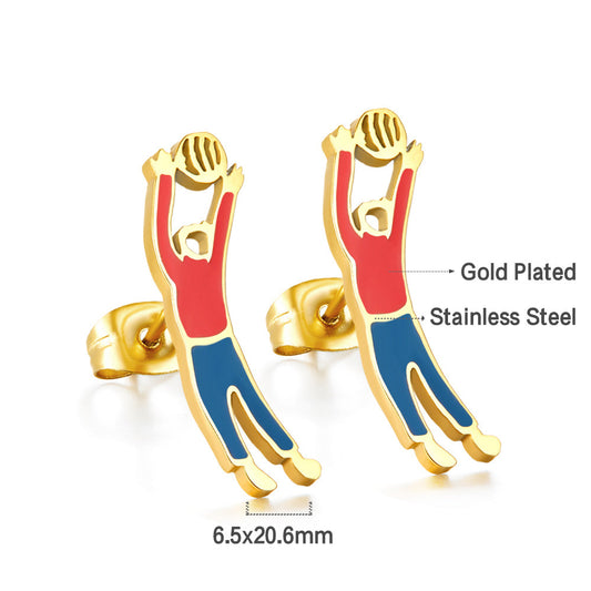 Enamel Girls Kids Jewelry Boys Playing Volleyball Mixed Color Cut Stud Earrings